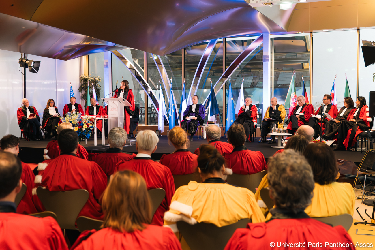 La cérémonie s'est déroulée dans le patio du centre Assas en présence des vice-présidents, du corps professoral et professeurs émérites et honoraires de l'université.